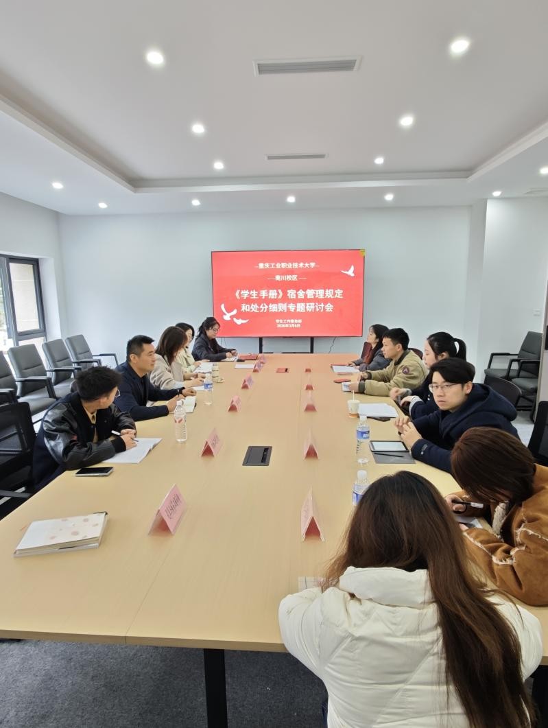 为进一步完善学生管理制度,提升宿舍管理服务效能,推动“一站式”学生社区建设与日常管理深度融合,3月6日,我校南川校区在“一站式”学生社区综合服务中心召开《学生手册》宿舍管理规定和处分细则专题研讨会。学生工作事务部相关负责人、各二级学院综合办主任、分管寝室工作的辅导员代表参加会议。