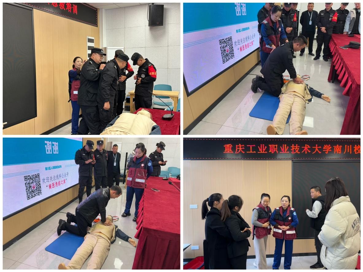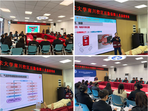 为全面提升我校后勤服务队伍的应急救护能力,夯实平安校园建设基础,11月18日,南川校区基建后勤处特邀重庆市南川区人民医院急诊科专业医护团队来校开展应急救护专项培训。南川校区社区管理员、宿管老师、物业安保等一线后勤保障人员参加了此次培训。