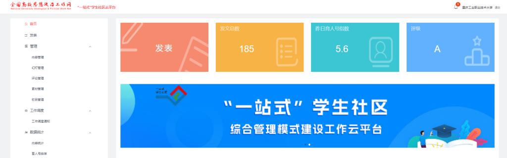 近日,在教育部思政司开展的2024—2025学年“一站式”学生社区建设情况报送工作中,我校凭借扎实的建设成效与创新实践,从全国参评高校中脱颖而出,连续两年获评最高等级A类。在重庆市属高校中,A类评定比例严格控制在15%以内,我校的连续入选标志着建设工作已形成可复制、可推广的“重工大经验”。