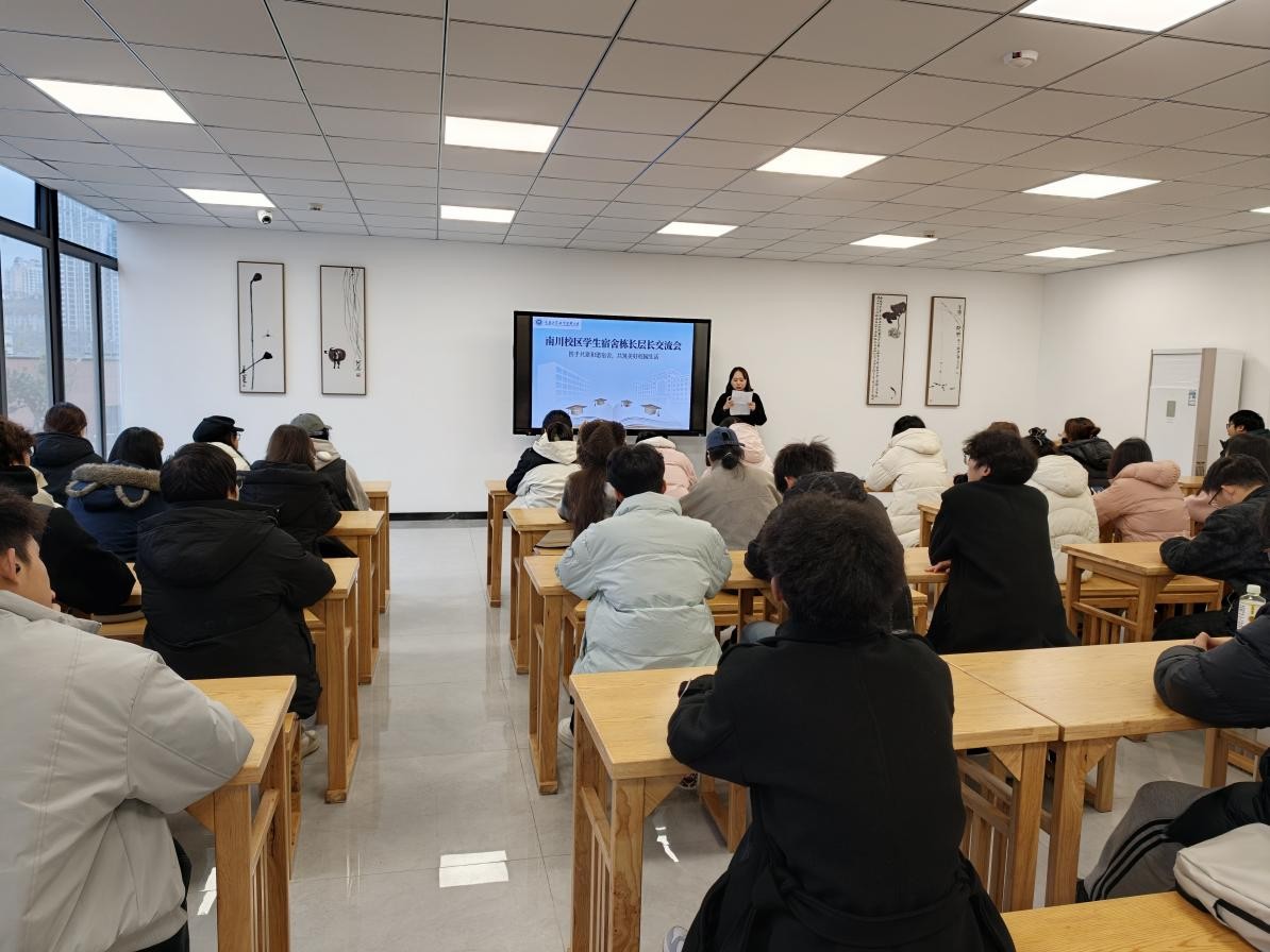为深入推进学生宿舍网格化管理机制落实,进一步发挥学生骨干在社区管理中的桥梁纽带作用,12月25日,我校在南川校区樱花苑二舍文沁苑组织召开学生宿舍栋长层长交流培训会。会议聚焦强化学生自治网络建设,提升社区治理效能。