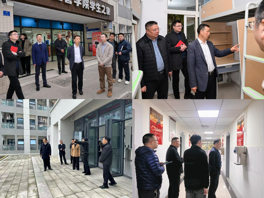 图为校领导带队分别走访两江、南川校区学生公寓查看社区开学准备情况