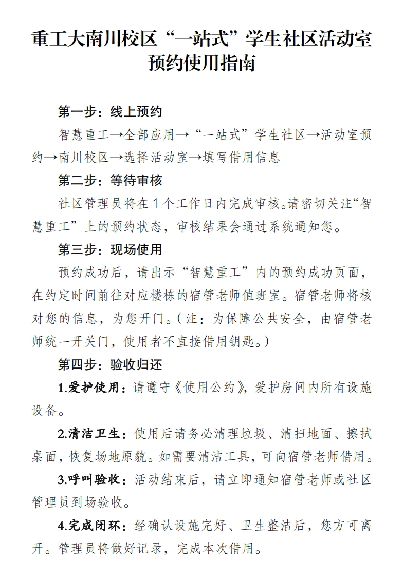 【“一站式”学生社区】重庆工业职业技术大学南川校区“一站式”学生社区活动室预约使用指南